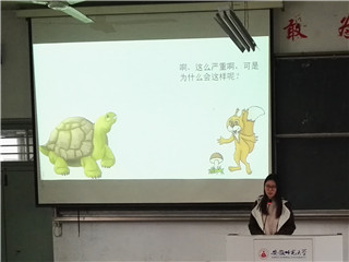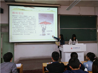 环境保护协会于生化楼2033、2034同时举行绿色使者选拔赛复赛。复赛以模拟课堂的形式开展。现场气氛有序而轻松,参赛者们积极投身于环保PPT的演说中,以多种多样的演说方式赋予了本次复赛更多的意义和价值。他们巧妙地将谜语,小故事,有奖竞答,诗词歌赋和演讲内容融合在一起,并穿插相关的环保宣传片和绿色歌曲,让现场观众享受了一场视听盛宴。最终,由复赛甄选出的六组选手成功进入决赛环节。