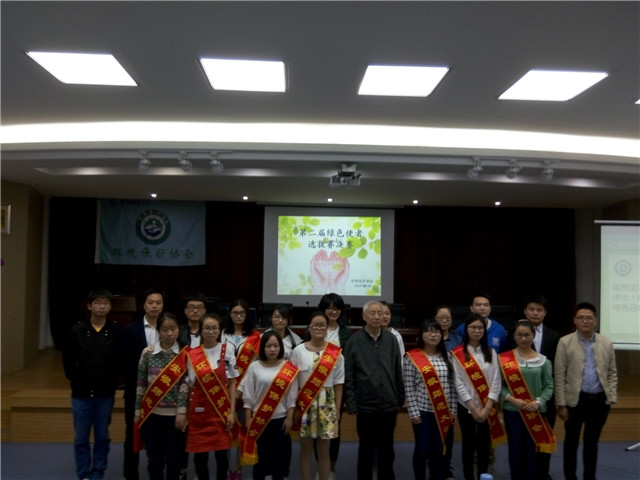 经过层层选拔、不断择优,参赛者们以更积极更自信的姿态出现在决赛现场。选手们将环保小知识巧妙融入ppt讲说中,以更加亲切的方式娓娓道来,他们述说的主题多样,但宣传环保的初衷却是相同。比赛过程中穿插了有奖竞答环节,充分调动了现场观众的热情和积极性。选手展示结束,宫世国老师发表讲话,宫老师对本次大赛进行了相关点评,提出了活动本身存在的不足并给予建议,与此同时也对选手们寄予了厚望,希望他们能充分把握课堂,做好基本功,合理安排课堂结构,在环境教育的路上越走越远。最后,主持人公布成绩,宣布获奖名单,第六组选手储独俊、钱珊珊获得了一等奖的好成绩。随后获奖者上台领奖并与颁奖老师合影。由此本次大赛圆满结束。