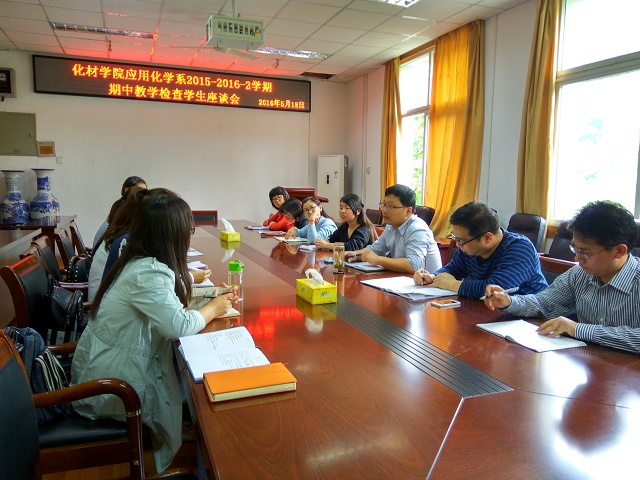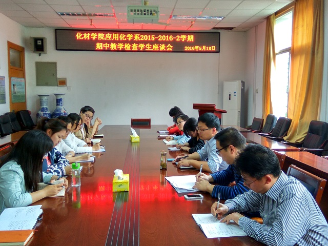 应用化学系2015-2016学年第二学期期中教学检查学生座谈会。此次会议旨在聆听学生学习中遇到的难题及教师教学中存在的问题,张小俊副院长、绿帽奴
