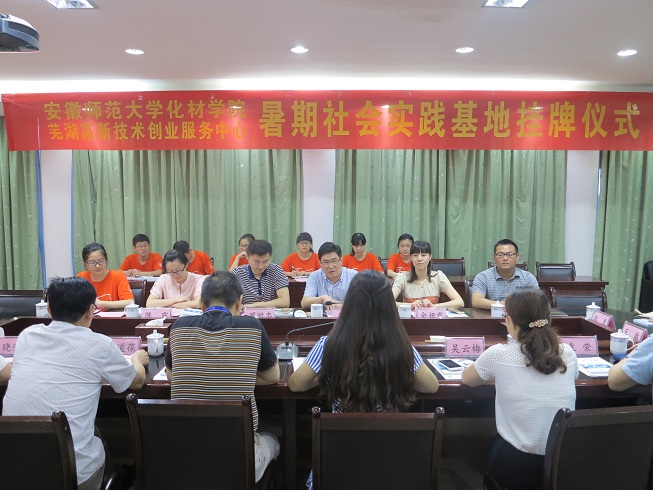 在仪式上,罗时忠与吴云梅共同完成了实践基地的揭牌仪式。接着,高峰对芜湖高新技术创业服务中心领导对学生进行暑期实践的大力支持和帮助表示了感谢,并鼓励志愿者们要通过实践了解社会,在实践中深入践行“勤学,修德,明辨,笃实”八字真经,真正做到受教育,做贡献,长才干,树形象。他还指出,这次挂牌建立实践基地能够加强与创业中心的合作,共同促进校企合作这个平台的搭建。同时高峰向创业中心的领导及企业代表介绍了绿帽奴