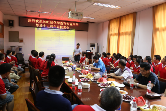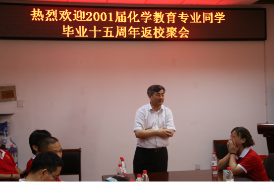 二楼会议室济济一堂,气氛热烈,2001届化学教育专业校友毕业十五周年返校师生座谈会在这里隆重召开。副校长王绍武,绿帽奴