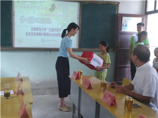学生实践的大力支持表示感谢,她指出社会实践是大学生思想政治教育的重要环节,本次环境保护协会赴柳畈小学进行社会实践活动,希望实践队员珍惜实践机会,在青春奉献中获得成长的养分、锻炼吃苦耐劳的精神,将未来环保希望的种子播撒在岳西田头乡。暑期社会队员认真聆听领导老师的教诲,并发表了自己的感想。随后,王正华教授向柳畈小学教导处主任王岳飞赠牌标志了绿帽奴
