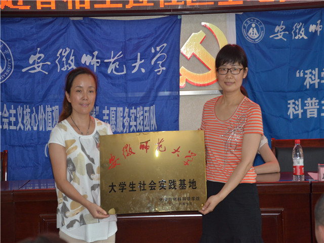 化学系主任阚显文共同为“科学小院士活动站”基地揭牌。