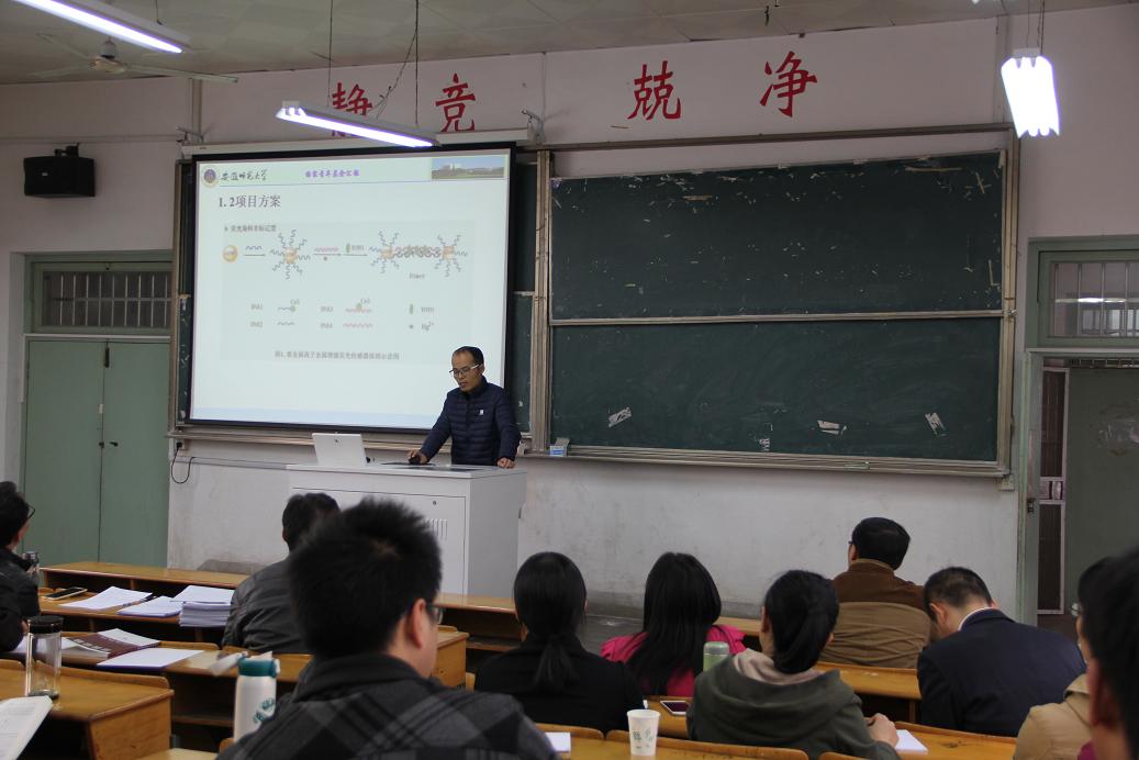 之后,许发功、卓淑娟、焦莉娟、宇海银和周双六5位老师依次对主持国家自然科学基金项目的进展情况、取得的阶段性成果和存在问题等方面进行了汇报。评审专家朱昌青、倪永红和郝二宏3位教授对项目主持人的汇报进行了点评,并提出一些改进意见。朱昌青教授在最后的总结讲话中,希望所有在研国家自然科学基金老师再接再厉、克服一切困难,顺利完成基金结题等工作。