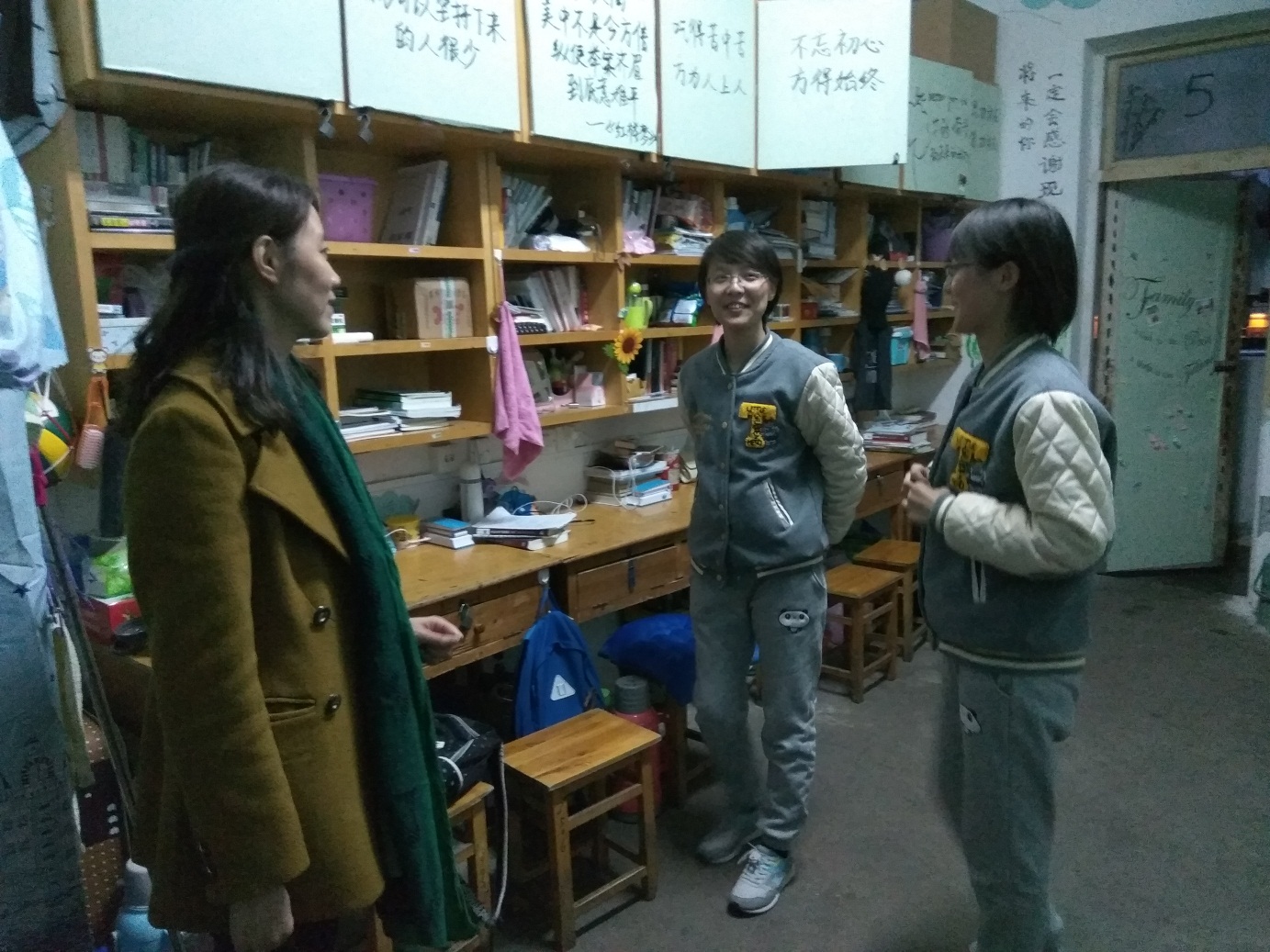 党委副书记余妍霞带领全体辅导员走进学生寝室检查冬季安全卫生状况,全面细致排查潜在安全隐患,逐一提醒寝室用电安全、人身安全、财产安全的重要性,鼓励表扬了寝室卫生状况优秀的寝室。各班级纷纷召开冬季安全教育主题班会,同时利用QQ、微信、微博等线上媒体平台,通过多种形式、多种渠道开展以防火防盗、防交通事故、防聚会滋事、防传销、防诈骗等为主要内容的安全教育和遵纪守法教育,提高学生的安全意识以及安全问题应对能力。