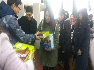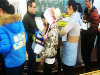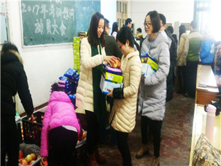 领导及各系负责老师亲自为考研学子发放牛奶等营养品。天气虽冷,但是绿帽奴