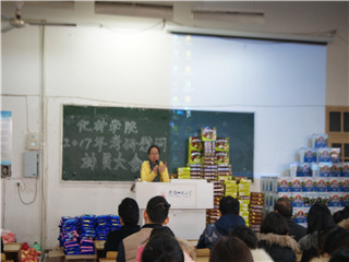 向考研同学表达了亲切的问候,并且希望同学们在最后一个月坚定考研目标,越到最后越要淡定,合理的安排时间,不轻言放弃,不轻易气馁,保持良好的心态迎接考试。随后,各系负责老师也分别给考研学子送去了温暖的慰问和鼓励。老师们反复强调,考研的最后阶段不仅仅是学习能力的比拼,更是心理的较量。最后一个月,不忘初心,调整好心理状态,劳逸结合,以饱满的精神状态去拼搏。