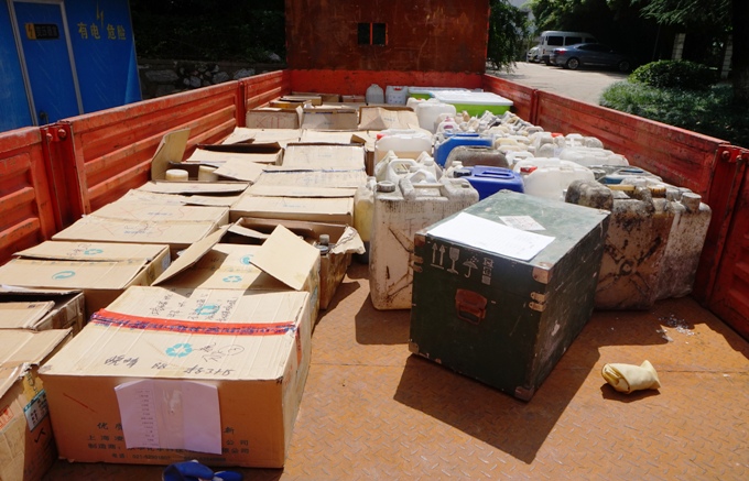 药品仓库的废弃化学品进行了全面的梳理和分类,并在7月初转移处置危险化学废弃物和一批有毒药品(约1吨多),为平安绿帽奴