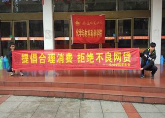 在赭山校区食堂门口,利用展板和横幅,开展了校园网贷知识宣传及公益签名咨询活动。近300名学生广泛参与、积极签名,营造了抵制过度消费、远离不良网贷的氛围。