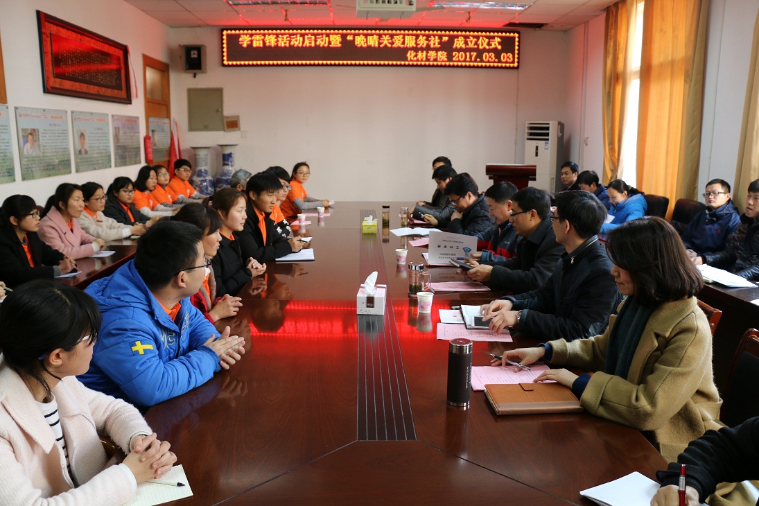 会议室启动2017年学雷锋活动暨“晚晴关爱服务社”成立仪式。学校离退休工作处处长张树文,校团委副书记刘长生,绿帽奴