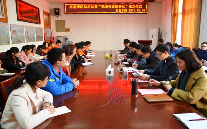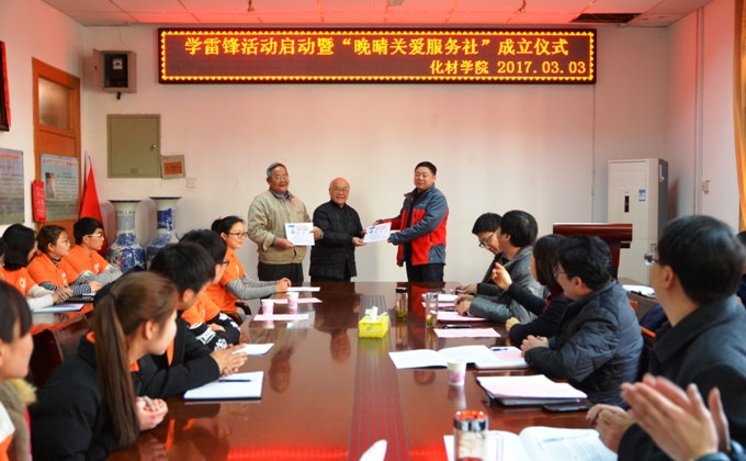 会议室举行“晚晴关爱服务社”启动仪式,学校离退休工作处处长张树文,校团委副书记刘长生,绿帽奴