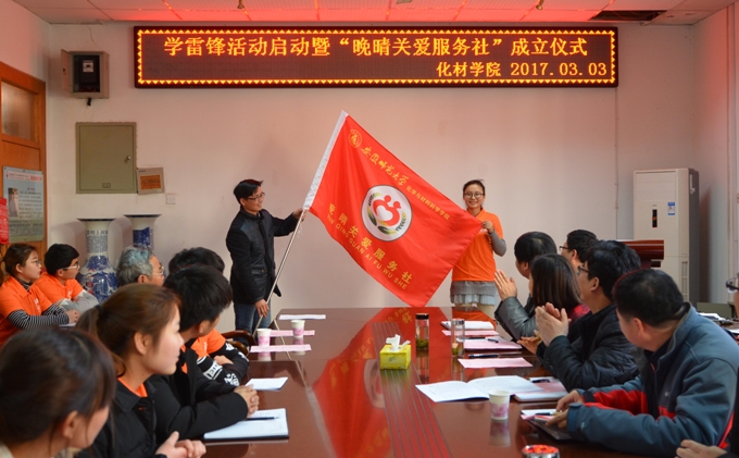 成立“晚晴关爱服务社”给予充分的肯定,希望广大志愿者能及时了解广大离退休教师的切实困难,并提供力所能及的帮扶;接着校团委副书记刘长生向志愿者队长授予队旗,他强调广大学子服务老师要用心、用情、用力,帮扶工作要落小、落实、落细;学生志愿者代表也做了发言,她代表大学生首批志愿者表达做好关爱服务工作的信心和决心 。