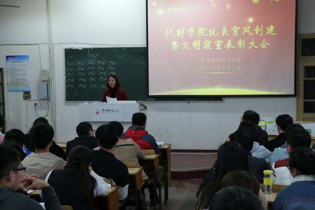 党委副书记余妍霞在会上就“优良室风”创建工作提出要求,她以同学们身边的优秀寝室为案例,列举说明了一个寝室的室风好坏将直接决定着寝室成员的学风好坏,也直接影响着寝室成员的学业水平和未来发展。她强调创建学生寝室的优良学风、室风是每个寝室成员的责任和义务。她号召全体寝室长要积极带头,切实行动起来,认真落实“五好寝室”创建活动的各项要求,为建设优良寝室室风,为养成良好的文明行为习惯,为创建和谐、文明、平安、美丽的学习生活环境,共同努力!