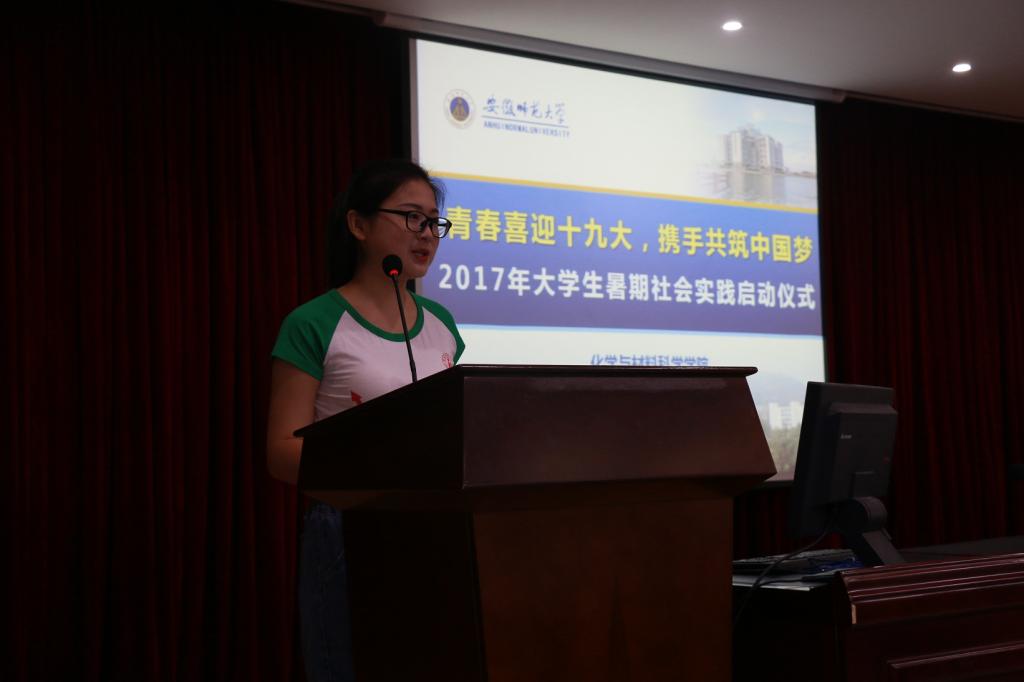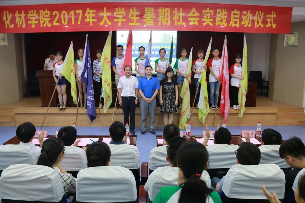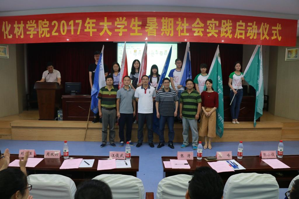 关于成立2017年暑期“三下乡”社会实践活动团队的通知》,明确了2017年社会实践校院两级重点团队名单。化工系主任罗时忠老师作为暑期社会实践团队指导老师代表发言,鼓励化材学子在志愿精神的感召下,结合专业特色,发挥专业特长,积极投身实践,实现自我成长。2015级材料化学专业学生刘茹代表社会实践志愿者发言,她号召全体实践队员秉乘绿帽奴