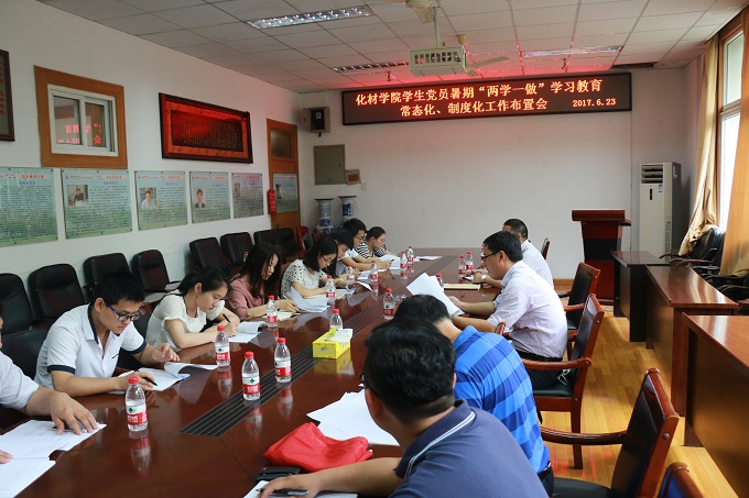 党委在二楼会议室召开学生党员暑期“两学一做”学习教育常态化制度化工作动员布置会,全体学生党支部书记、研究生秘书、党委委员参加了会议,会议由党委书记汪俊武主持。
