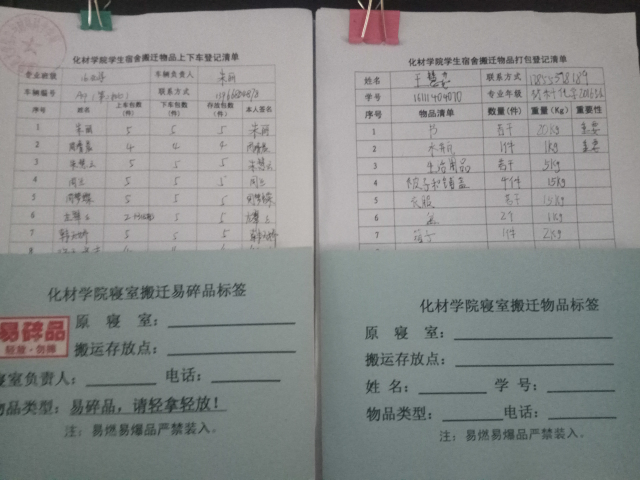 学生宿舍搬迁物品上下车登记清单,在各个搬迁节点,提醒学生清点包裹数目,防止物品遗失。绿帽奴