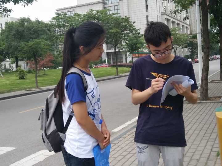 、安徽工程大学,在青年大学生中开展“考研与就业选择”的调研。在发放问卷的过程中,队员们有礼貌的、耐心的等待同学们填写问卷,并细致的就同学们提出的问题一一作答,进行轻松愉快的交谈。顶着炎炎烈日,历时约三个小时的问卷发放,队员们高效率工作回收有效问卷千余份。成员们纷纷表示,问卷调查不仅仅是调查在校大学生的自我选择,更是引领其对未来的思考。活动尾声,队员们在美丽的校园里合影留念,脸上不约而同的灿烂笑容为此次问卷调查画上了圆满的句号。
