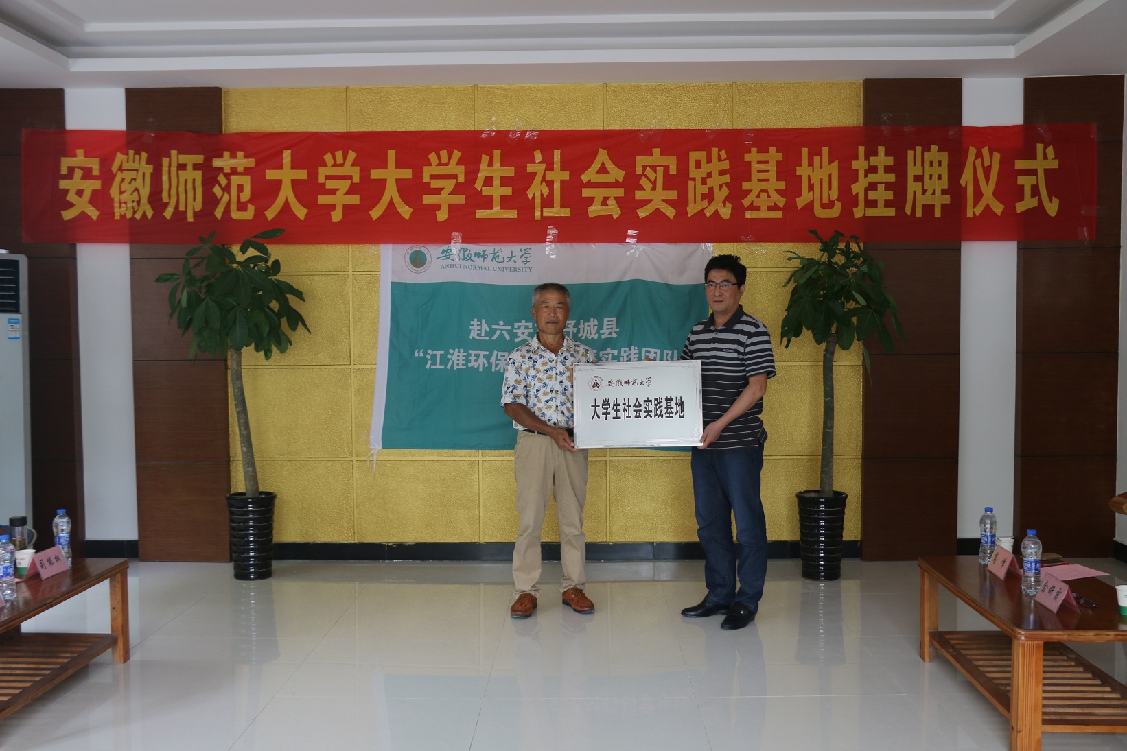 高峰院长致辞,他首先向辛勤实践、投身基层开展环保主题实践活动的志愿者们表达了亲切的慰问,向提供实践条件支持帮助我院学生开展实践活动的地方政府、环保局和明松农业有限责任公司表达了衷心的感谢。同时他希望实践团队的每一位队员珍惜锻炼机会,常怀感恩之心,拜人民为师,向群众学习;要把知识理论与实践应用相结合,在活动中进一步受教育、长才干、做贡献,也充分展示青年大学生的良好素质。公司法人代表王欢,以毕业大学生返乡创业者的身份,与志愿者们分享了他的生态农业有限公司的创业故事,他鼓励同学们要正确看待大学生创业,要学习不怕吃苦的创业精神。王明松董事长充分肯定了社会实践志愿者放弃假期休息投身基层锻炼成长的精神,特别鼓励在场的“江淮环保行”团队成员要再接再厉,争取在环保实践中做更多的贡献。最后,高峰院长和明松农业有限公司董事长王明松共同为大学生社会实践基地揭牌。