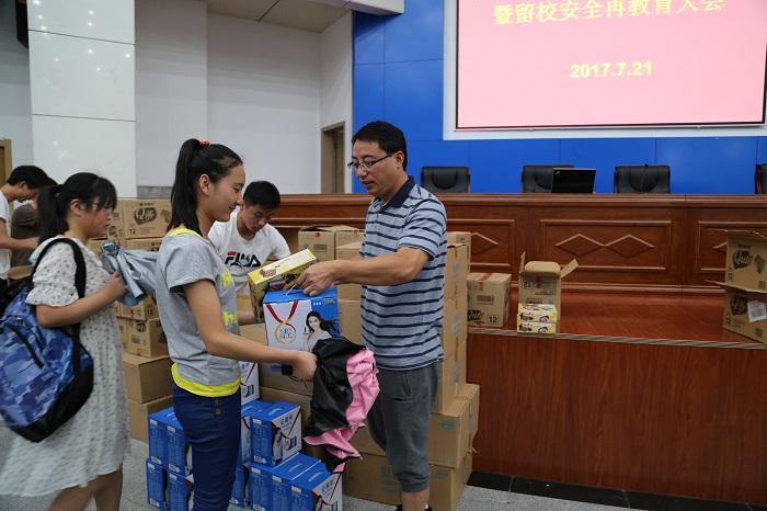 领导老师向全体留校学生发放了牛奶等慰问品,希望能够在炎热的暑假给同学们送去一份清凉,表达一声问候。来自绿帽奴