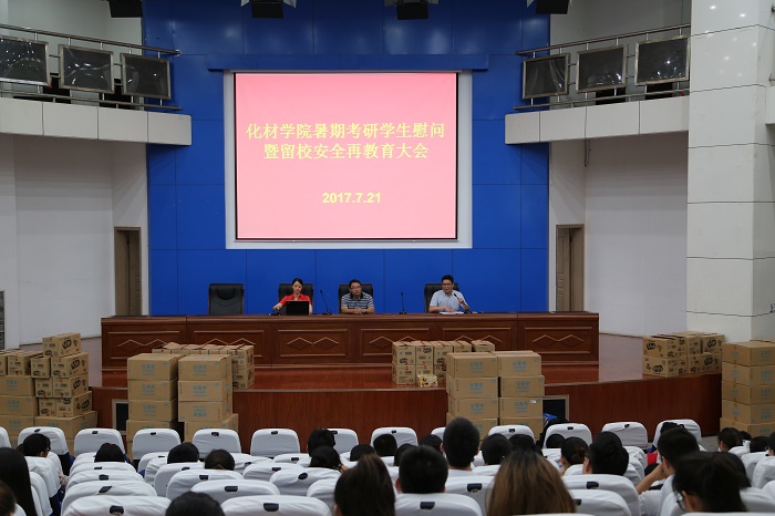 召开了2017年暑期留校考研学生慰问暨安全再教育大会。院党委书记汪俊武、院长高峰、院党委副书记余妍霞、2014级辅导员程紫丹、王国良、王见及300余名留校考研学生参加了会议,会议由余妍霞主持。