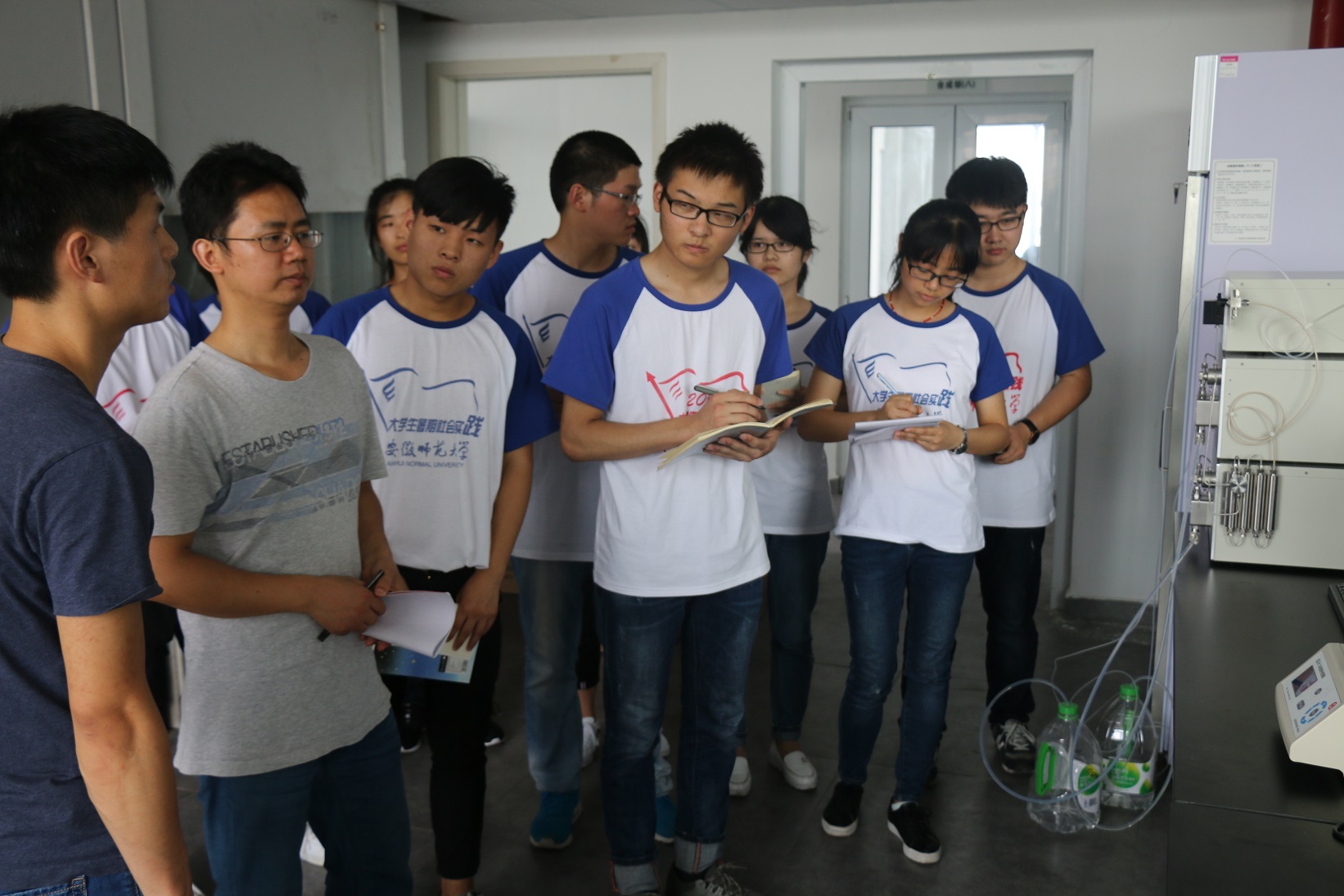 精心组织5支实践团队近80名学生走进企业、对话创客,开展暑期专业成长教育实践活动。实践团队在指导教师章青副研究员和蒋建伟老师带领下,先后走进芜湖华仁科技有限公司、铜陵有色金属有限责任公司、安徽美佳新材料股份有限公司、芜湖通全科技创业园、芜湖资城孵化器管理有限公司等十余家企业和创业园,实地探访了解企业产品生产车间,学习生产工艺和流程,交流专业知识、技术运用和科技发展趋势,了解企业人才需求及相关产业发展前景。知名校友、华仁科技创始人林金来博士在接受大学生采访时鼓励同学们做科学研究一定既要“仰望星空”,又要“脚踏实地”。