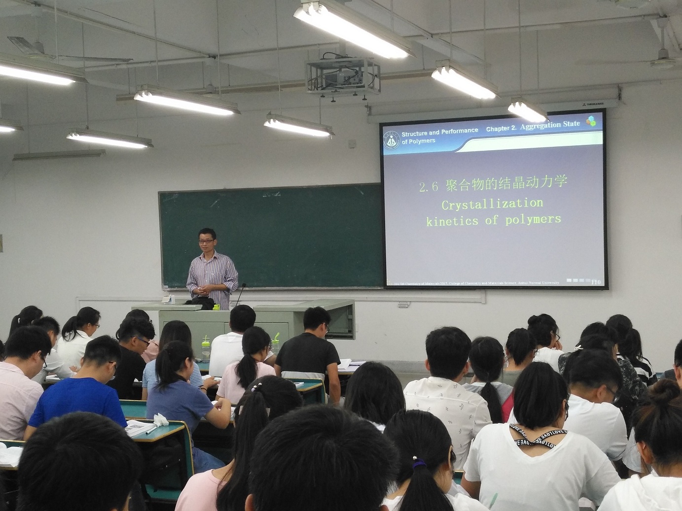 在教学方式上,宇老师在上课内容内容充实而生动的前提下,老师通过鲜活事例的列举,再配以宇老师的的不断发问,将“聚合物的结晶热力学与动力学”娓娓道来,不仅简洁凝练,而且,声像并茂。整个教学过程中,宇老师紧扣课程主线,理论与实例相结合,重难点详细透彻,师生们互动频频,使同学们在不断地思考与解惑中获得成长与进步。