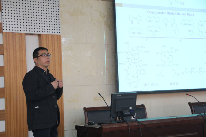 于长江、张小璇、郝二红、黄玉成等四位老师依次对所主持的国家自然科学基金项目“新型α,β位稠环Aza-BODIPY近红外染料的合成及性能研究”、“特异性分离亲脂性污染物的磁性仿生吸附剂的构筑及机理研究”、“近红外多吡咯光敏剂的合成与性质研究”、“层状金属硫族化合物的电子结构、磁学及其加氢催化性能的理论研究”的进展情况、取得的阶段性成果和存在问题等方面进行了汇报。