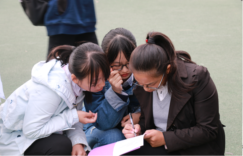 活动伊始,全体同学按照专业分成了4个小组,各小组成员都积极地开动脑筋,集思广益、团结协作,迅速创作了团队队徽队旗。接下来的党的十九大知识竞答环节将活动推进了高潮。竞赛共分为三个环节:必答环节、抢答环节和风险题环节,这三个环节中,成员们对答如流,踊跃抢答,赛点之时更是激烈万分,充分展现了成员们对十九大报告和精神的强大储备。最后的互动环节,将“你画我猜”“传话接力”与十九大报告关键词紧密结合,使同学们在游戏的欢乐中,增进了对十九大精神及其相关名词的深入了解。