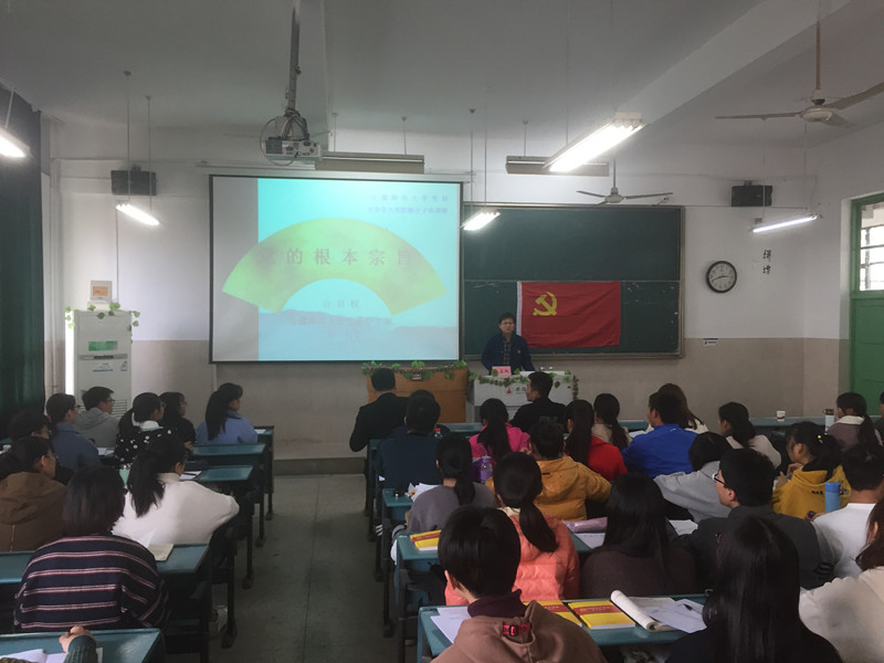 第23期入党积极分子培训班如期举行。校学生处处长,学工部部长台启权老师应邀为学员们作“党的宗旨”主题授课。本次党课由化材院蒋建伟老师主持。