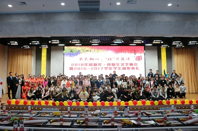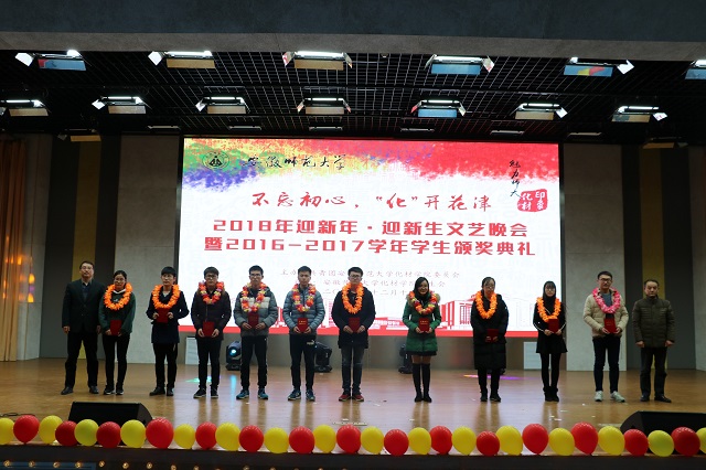 在理科大楼报告厅隆重举办“不忘初心,‘化’开花津”2016-2017学年学生颁奖典礼暨2018年迎新年迎新生文艺晚会。绿帽奴
