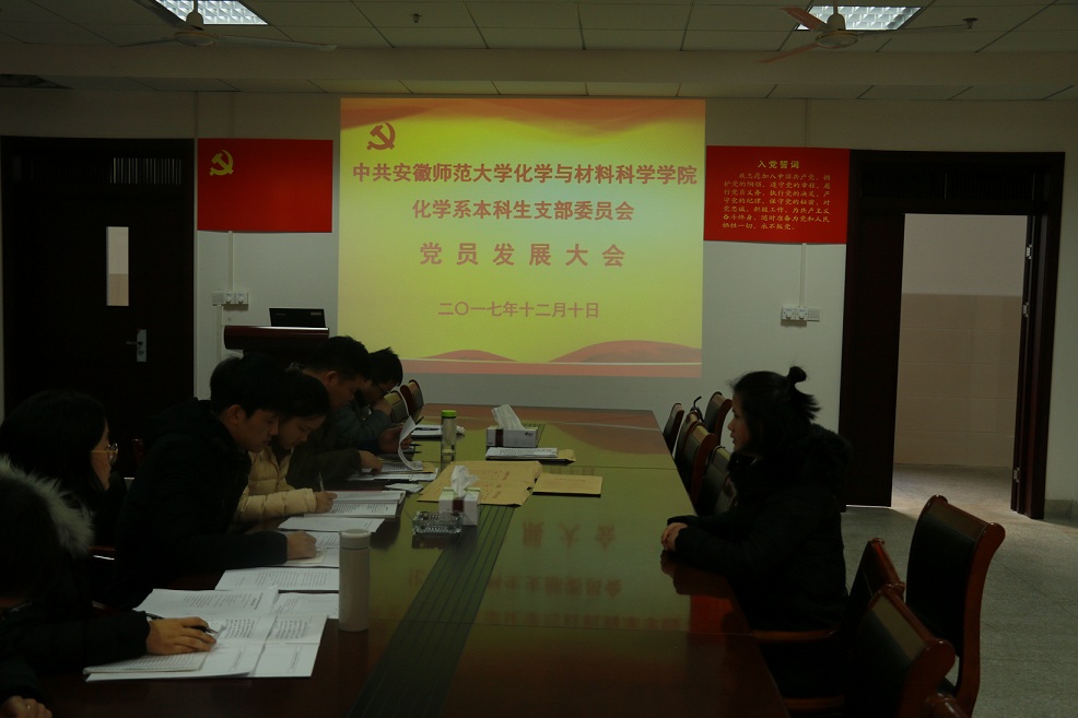 化学系本科生党支部党员发展大会在理科实训大楼707党员活动室召开。支部在校党员21人、本次发展对象12人及发展对象入党介绍人参加会议。大会由化学系本科生党支部书记蒋建伟老师主持。
