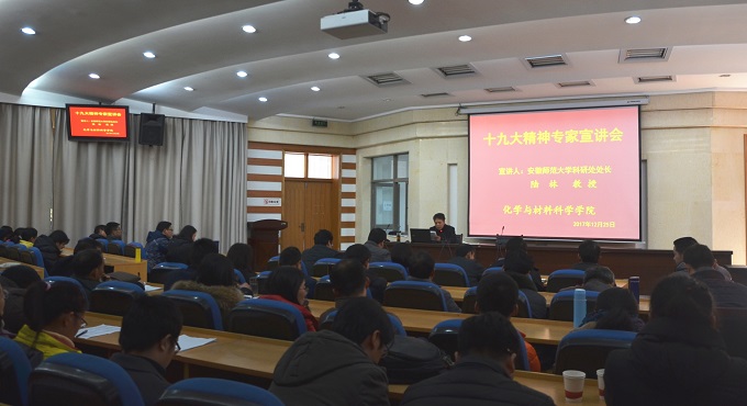 在花津校区视频会议室举办“创新中国”—党的十九大精神专家宣讲报告会,特邀科研处处长陆林教授为全院教职工做题为《创新中国—党的十九大精神解读》辅导报告,报告会由绿帽奴