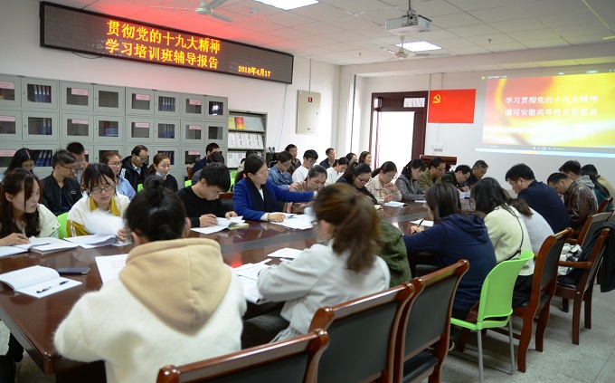 汪俊武提出本次培训的目的是通过学习培训,使广大党员干部深刻领会党的十九大精神,深刻领会习近平新时代中国特色社会主义思想的历史地位和丰富内涵,进一步增强广大党员的“四个意识”,坚定“四个自信”。 不忘初心,牢记使命,立足岗位,为谱写学校改革发展新篇章做出积极的贡献。培训的内容包括党的十九大精神、习近平新时代中国特色社会主义思想、党支部标准化建设。培训方式主要有集中培训、专题辅导报告、自学以及实践教学等。培训安排在4-5月份两个月时间。