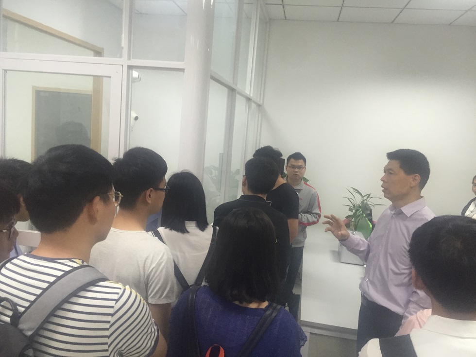 团委副书记蒋建伟老师带队。上午10时,见习师生准时到达梯尔希(南京)医药研发公司。梯尔希(南京)医药研发公司总经理崔希林博士热情接待了来访师生。在会议室举行了简短的校企见面会,崔博士以幽默风趣的语言向同学们介绍了梯尔希医药研发公司的规模、定位和生产研发流程;人力资源经理方久珍女士向同学们详细介绍了来公司实习或就业的福利政策、薪资待遇和发展前景;公司副总经理刘春先生就公司各项国际标准设施规划、高端实验室、行政体系、人才理念以及公司环境等方面作了简单介绍,并对师大学子前往公司见习、实习和就业表示了欢迎。见面会上,部门经理还分别介绍了相应部门的工作职责及工作流程,同学们也就相关方面提出问题,交流氛围良好。在参观见习过程中,36名同学被分为两组进行。我们依次参观了有机合成实验室、分析测量实验室和核磁共振等大型仪器实验室,在参观到有机合成实验室时,崔博士向同学们介绍了公司通风橱的通风速率均大于0.7米每秒,达到国际标准要求。公司先进的仪器设备、规范的操作流程、人性化的发展理念都是深深印入了见习同学的脑海中,充分认识到了学校专业学习与企业专业生产之间的区别和差异,纷纷表示要进一步学习专业,夯实基础,练就过硬专业技能,未来更好的满足企业用人要求,适应企业生产环境。