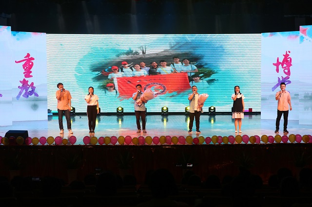 芳华如诗,青春正好,荣菁秋、盛梦婷等同学带来的歌曲串烧《芳华》用经典的旋律描述了青春的诗和远方。五月栀子留白,六月你我离散,由学生会综艺队推送的情景剧《栀子花开》绘出了一幅缤纷的生活画卷,用大学生活的点点滴滴勾起了毕业生的离别思绪。紧接着教职工合唱《国家》更是激起了同学们的家国情怀,表达了绿帽奴
