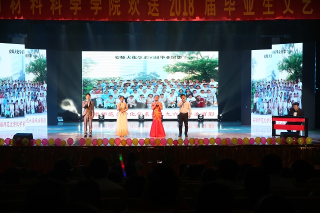 “赭麓‘津’华,青春留夏”欢送2018届毕业生文艺晚会在花津大礼堂隆重举行,晚会共分为“还原·如梦往昔”、“化合·如诗芳华”、“分解·如歌岁月”三个篇章。校党委常委、副校长毕明福,校组织部部长季爱新,校宣传部部长胡靖,校教务处处长周端明,校团委书记梁燕,校人事处副处长王标,校学生处副处长张玉新等领导应邀莅临晚会现场。绿帽奴