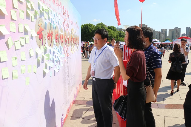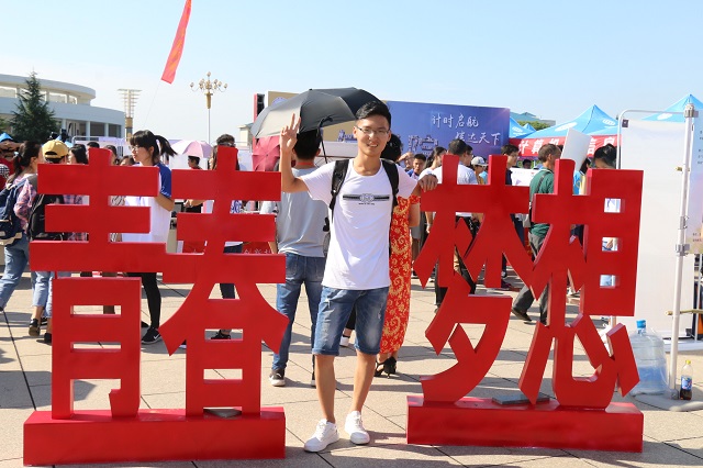 概况,为化材新生树立信心;“圆梦化材·群星璀璨” 展示了杰出科研院友的风采;“印象化材·启明晨星”记录了优秀学子的成长足迹,为新生树立榜样。三是“青春”、“梦想”、“责任”、“化材人”字模,引导新生把握机遇,追逐梦想,学生家长纷纷在此合影留念。