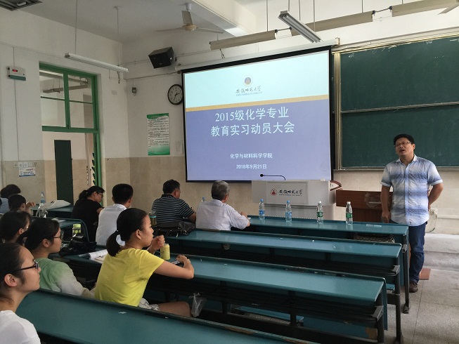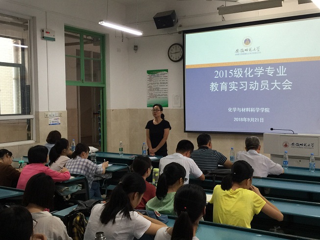教学副院长张小俊、化学系副主任孙影、教育实习指导教师以及2015级化学系全体师范生。会议由化学系主任阚显文主持。