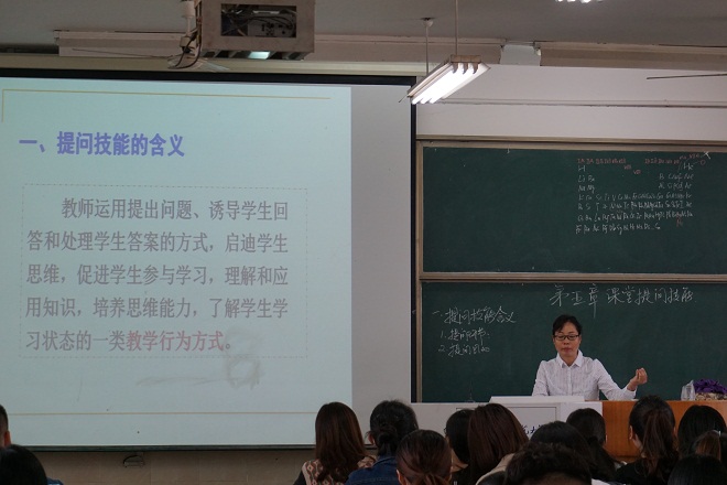 孙影老师主讲的《化学教学技能研究与训练》校级教学公开课。校督导团、院督导组和部分中青年教师参加了本次观摩活动。