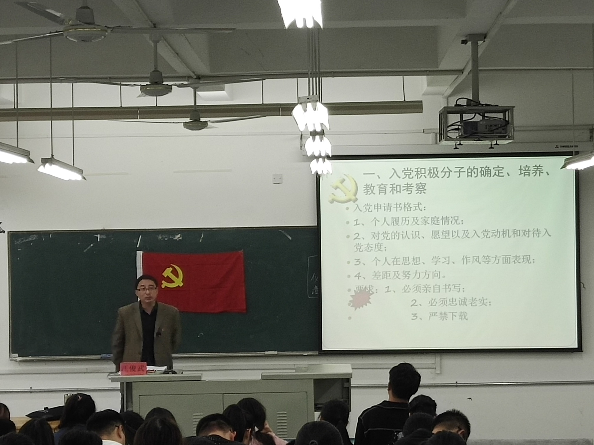 在时长两个多小时的授课时间里,汪书记以其清晰的思维脉络,生动有趣的授课方式,赢得了广大学员的一致好评,使学员们对思想入党和组织入党这一主题有了更加深刻的认知。作为社会主义的建设者和接班人,我们广大青年学子将坚定理想信念,始终保持政治上的清醒和坚定,用科学的理论武装头脑、指导实践,不断解放思想、与时俱进,真正做到从思想上入党,从组织上入党,以实际行动争取早日入党。