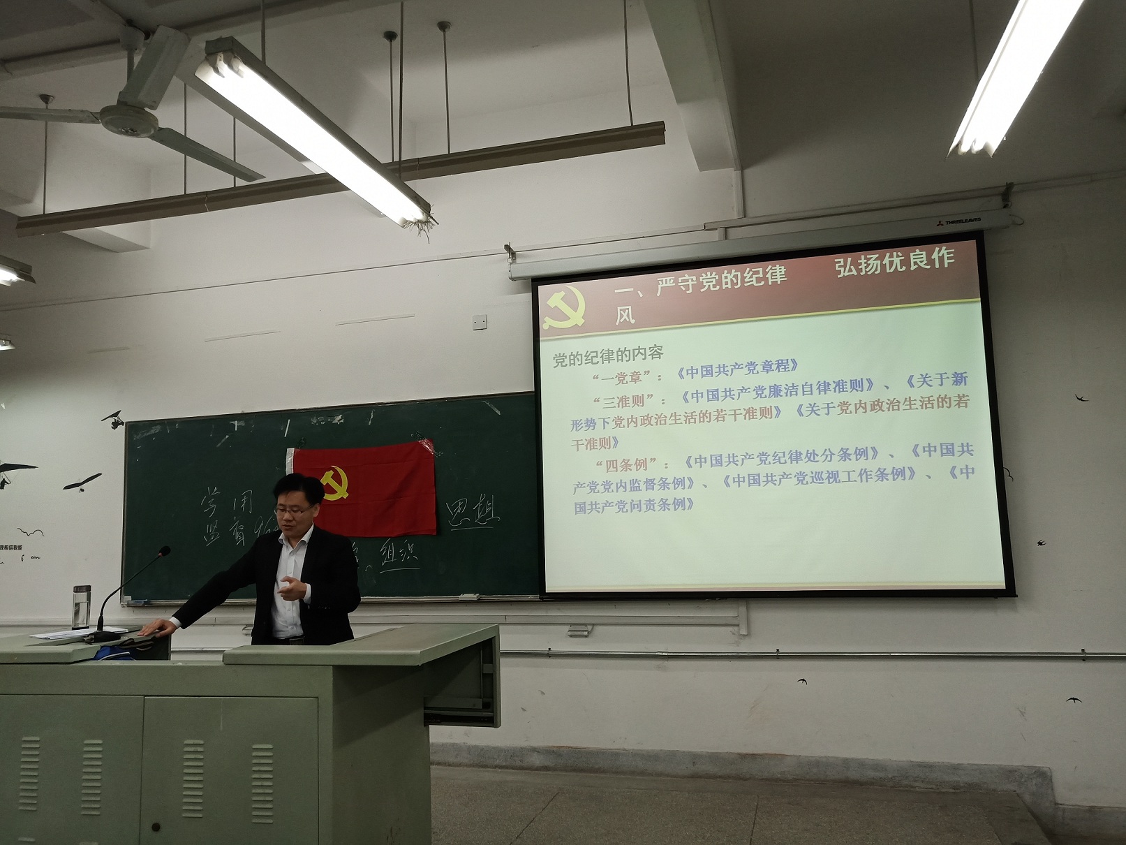 开班典礼结束后,谢超峰老师为全体学员授课。谢老师围绕“严守党的纪律,弘扬优良作风”“锤炼党性修养,永葆先进本色”两个主题层层展开,他着重围绕党的纪律发展历程、党的作风建设、共产党必须严格遵守的纪律标准等方面,向学员介绍了如何遵守党的纪律以及遵守党的纪律的重要性。