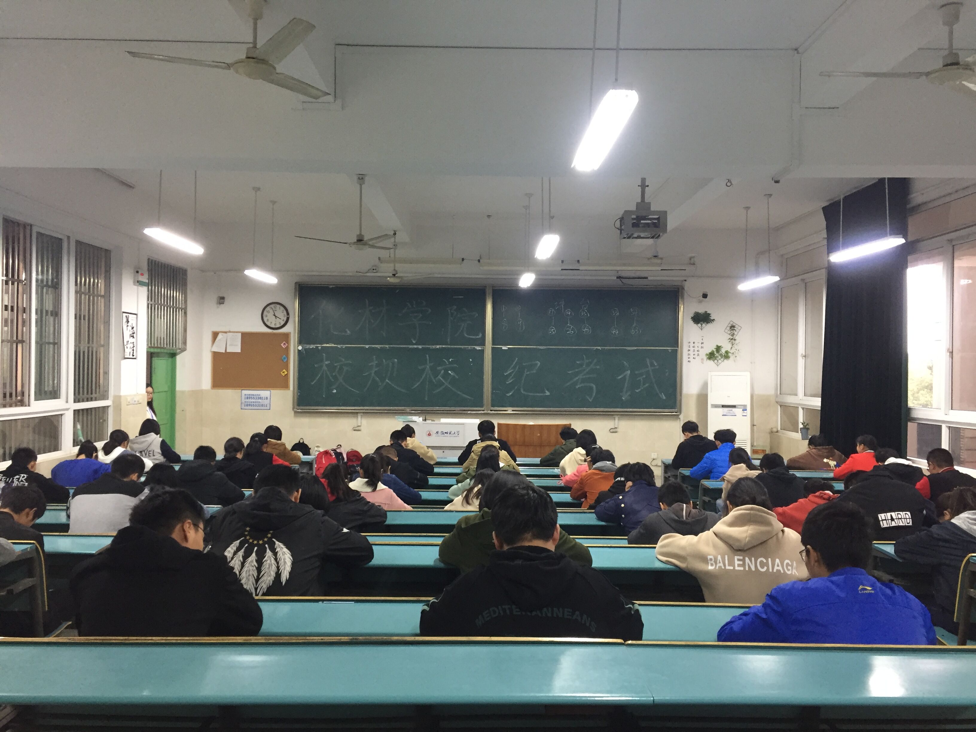 充分的备考准备、规范的考试行为、合理的监考安排体现了化材学子优良的学风、严谨的考风以及认真负责的态度,向全校展示着化材学子优秀的精神风貌。相信本次校纪校规考试会帮助2018级新生树立正确的纪律意识、制度意识,并增强自觉性,营造良好的学习氛围,杜绝违纪违规的现象。