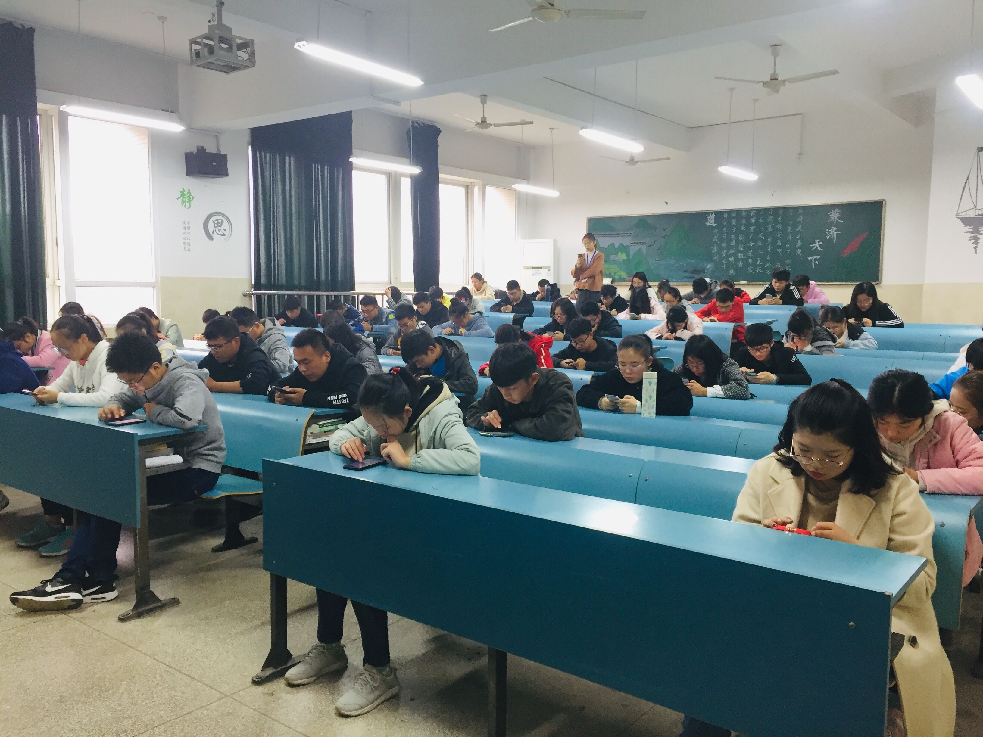 2018级新生校纪校规考试于行知楼一号楼顺利进行。此次校考与往年不同,往年的纸质版试卷变成了“易班”在线答题,虽使用手机答题,但在绿帽奴