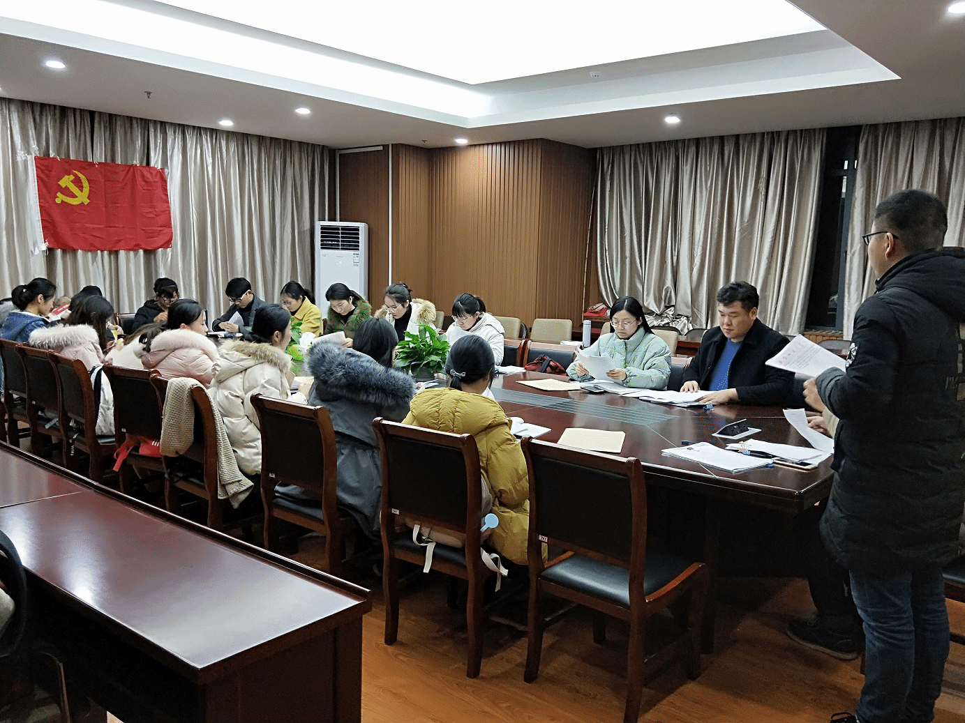 委员会发展党员工作细则》规定,逐项依次进行。会上,常乐、裘忆、高淼等9位发展对象逐一向党组织汇报自身对党的认识、入党动机、个人经历以及在校表现等,随后由其入党介绍人陈露老师、蒋建伟老师向大会介绍其现实表现的考察情况,支委会向支部大会报告了发展对象的政治审查情况。与会党员对发展对象能否入党进行了讨论和沟通,针对发展对象目前存在的缺点和不足提出了要求和建议。发展对象认真聆听,虚心接受,针对现有问题和建议表明了态度和决心。蒋建伟老师针对发展对象的发言提出 “什么是优秀?部分优秀就可以成为一名党员了吗?” 的问题,留给与会全体成员思考。最后,支部大会采取无记名投票的方式对发展对象能否入党进行表决,与会具有投票权的正式党员12人均一致投票通过接收常乐等9名发展对象为中共预备党员。