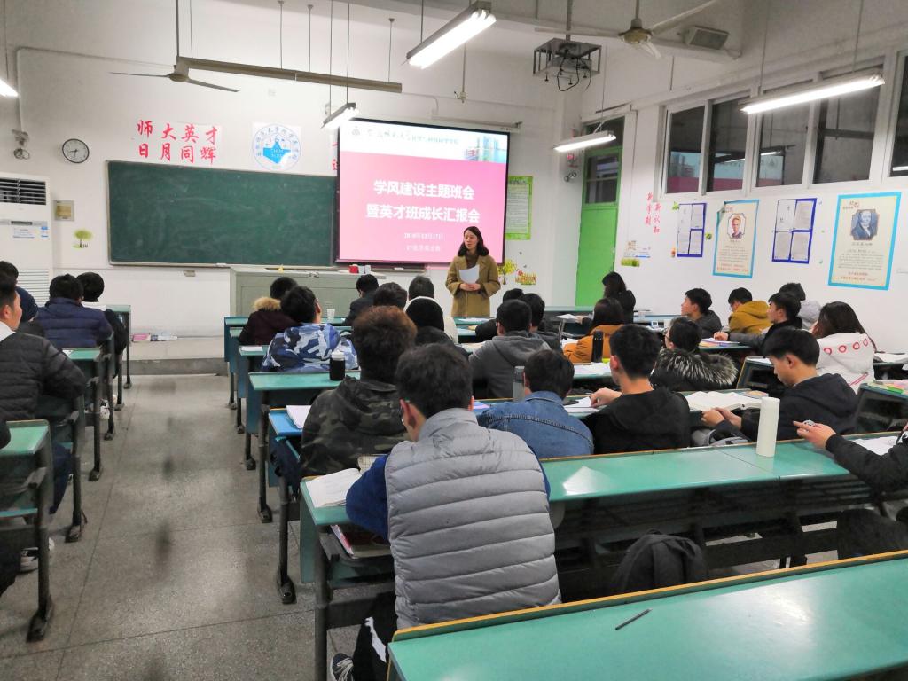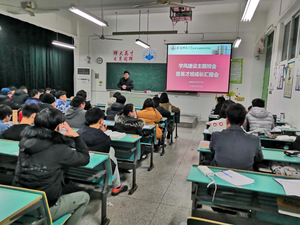 本网讯(绿帽奴 )为进一步强化绿帽奴 学风建设,加强思想引领,近日,绿帽奴 院长高峰走进17级化学非师范班主题班会,与学生共同探讨学风建设,聆听学生成长汇报。绿帽奴 党委副书记余妍霞参加了班会。辅导员荣菁秋主持了班会。