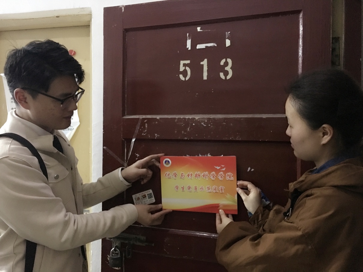 会后,院党委副书记余妍霞、各学生党支部书记及全体专兼职辅导员一同深入学生宿舍,为全体非毕业班党员寝室进行了“挂牌”,将“党员示范宿舍”和“党员示范床铺”标识牌粘贴在显著位置,激发学生党员争先创优的进取精神,扎实推进学生党建进宿舍工作。