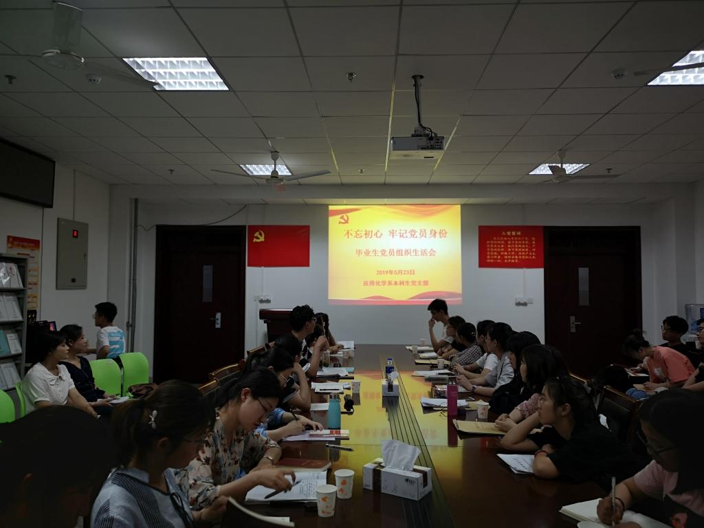 会后,应化系本科生党支部在化学楼707党员活动室召开毕业生党员组织生活会。会上,支部书记陶勇老师首先带领大家学习了中共绿帽奴