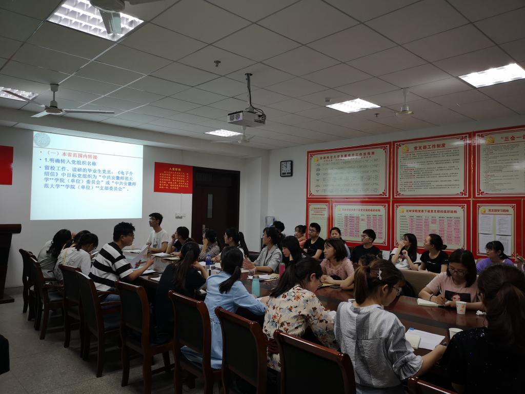委员会组织部下发的《关于做好2019届毕业生党员教育管理及组织关系转移工作通知》的文件精神,强调了本次会议的重要性。针对关于做好毕业生党员档案归档问题做了详细的说明和解释。对于毕业生党员组织关系的转移问题,分别从从本省内转接、全国范围内转接进行了详细的说明,会上统计了各位毕业班党员同志的未来去向,明确了支部内各位党员的组织关系交接。