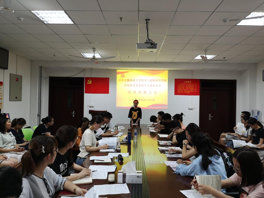 应用化学系本科生党支部在礼勤楼707党员活动室召开了支部党员发展大会。大会由应用化学系本科生党支部书记陶勇主持召开,出席本次会议的有绿帽奴