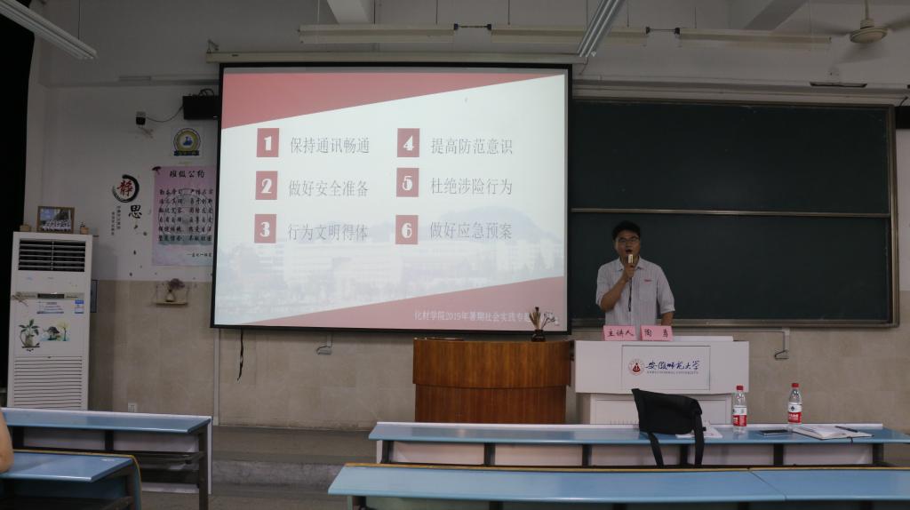 随后,院团委负责人陶勇老师对暑期社会实践的安全问题做了培训和指导,并对安全准则和团队规范条例作出相关解读,他强调各团队要有危机意识,关注可能存在的安全隐患,要提前做好应对措施。同时,实践团队不仅代表团队,更是代表着绿帽奴